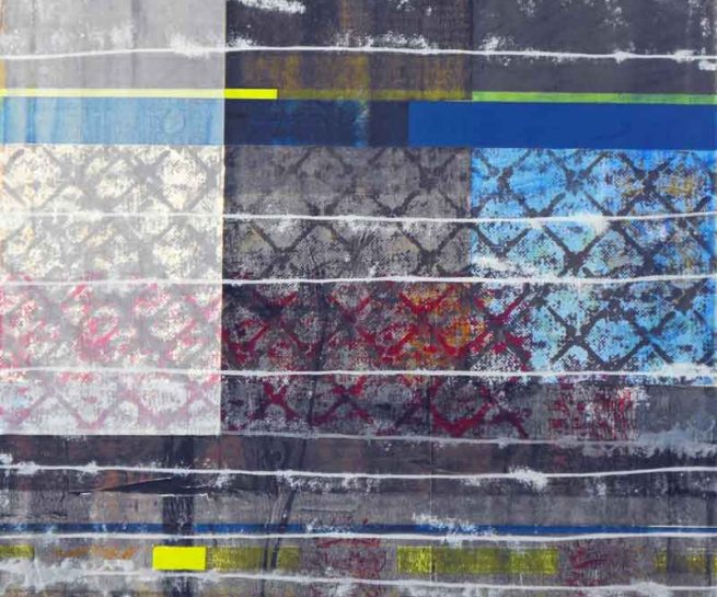 Hochschule Trier, Mixed Media und Siebdruck auf Leinwand, 160 x 90 cm, 2024