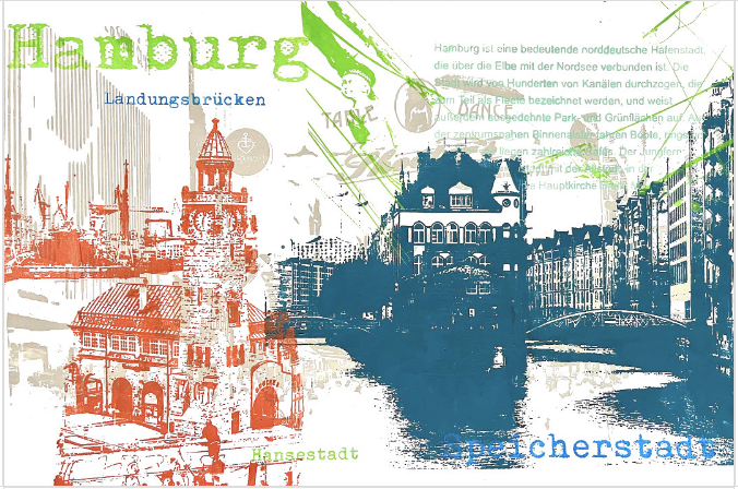 Die Speicherstadt bringt Ruhe und Struktur, die Landungsbrücken erzählen vom Hafenleben, und der Reeperbahn-Flair sorgt für das gewisse Augenzwinkern. Dieses Kunstwerk vereint all das auf eine stimmige, ausdrucksstarke Weise – ideal für Wohnzimmer, Büro oder kreative Räume mit Charakter.