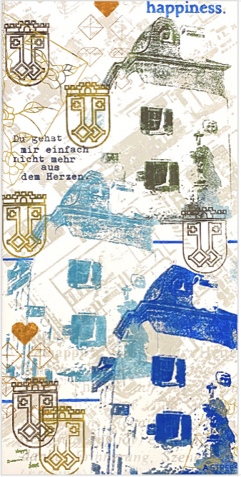 Das Türmchen steht als architektonisches Detail für die historische Prägung Wittlichs, während die wiederkehrenden Wappenmotive die Identität der Säubrennerstadt betonen. Handschriftliche Fragmente, grafische Überlagerungen und freie Farbflächen verleihen dem Werk eine persönliche, fast intime Ebene. Das Zitat verstärkt diesen Eindruck und macht das Motiv zu einer Liebeserklärung an die Stadt.