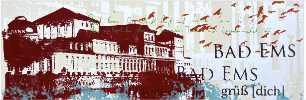 Das auf dem Original-Siebdruckkunstwerk abgebildete Motiv zeigt die historischen Thermen von Bad Ems nicht dokumentarisch, sondern in einer vielschichtigen, künstlerischen Interpretation. Architekturfragmente, Schriftzüge und freie Farbspuren überlagern sich zu einem atmosphärischen Stadt- und Kulturporträt, das die Bedeutung des Kurortes zwischen Geschichte, Gesundheit und europäischem Kulturerbe sichtbar macht.